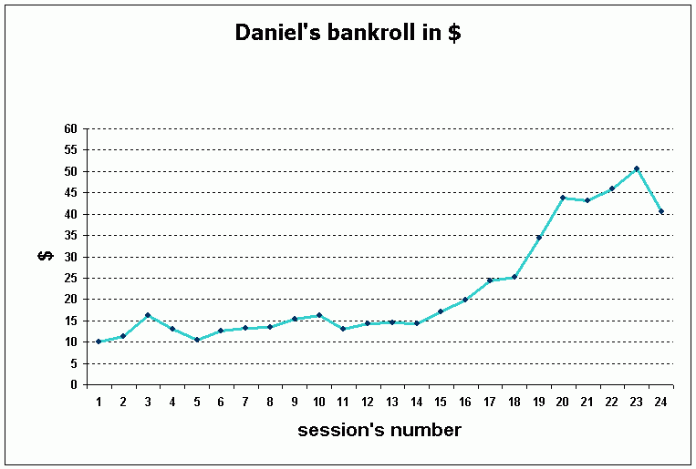 heshkak 0 Posted February 12, 2009 Share Posted February 12, 2009 Bump. GL Daniel. I'm looking to bring some life into my game, and am going to "play along at home" following Daniel's rules (but starting with $125). I totally disagree with the guys here that say the bankroll/5 rule is not enough. For example if you start with $125 and lose your buyin every session, then you would effectively buy in 20 times before going bust. I'm adding one rule for Multi tabling: In order for multi tabling, any subsequent table started must be bought in assuming the first table is a complete loss. Results: BB---------hands played---------bankroll delta---------total bankroll 0.25 -------------0------------------------ 0-------------------- 125.00 - Jan 210.25 ------------109---------------------48.30------------------173.30 0.25 ------------138-------------------- -2.55 ------------------170.750.25--------------95--------- -----------11.00-------------------181.750.25--------------98----------------------13.50------------------195.250.25-------------108------------------- -25.56-------------------169.690.25-------------121------------------- 19.66-------------------189.350.25--------------59------------------- -9.10-------------------180.250.25-------------114------------------- 3.30--------------------183.650.25-------------102-------------------29.95--------------------213.50 - Jan 290.25-------------135-------------------19.90--------------------233.400.25--------------56--------------------4.20---------------------237.600.25--------------??-------------------- -6.15---------------------231.450.25--------------??--------------------- -46.85 ------------------ 184.600.25--------------19--------------------6.25---------------------190.850.25--------------66-------------------- -9.85 ---------------------181.000.25--------------97--------------------54.30---------------------235.300.25--------------140-------------------42.15---------------------277.45 - Feb 8NEXT LEVEL: .25 - .50BB---------hands played---------bankroll delta---------total bankroll 0.50--------------0----------------------0---------------------277.45 - Feb 80.50-------------102----------------- -0.45-------------------277.000.50--------------85----------------- 22.80 ------------------299.80 Link to post Share on other sites